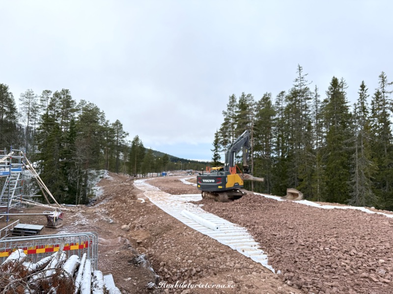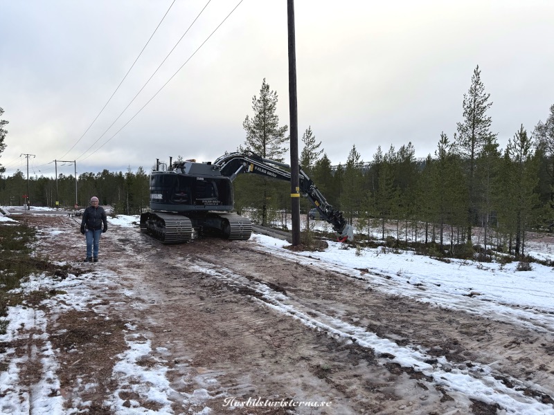 Kollade in skoterleden. Verkade som om man inte var klara med all nedläggning av kablar m.m., eftersom det stod en stor grävmaskin i skoterleden.