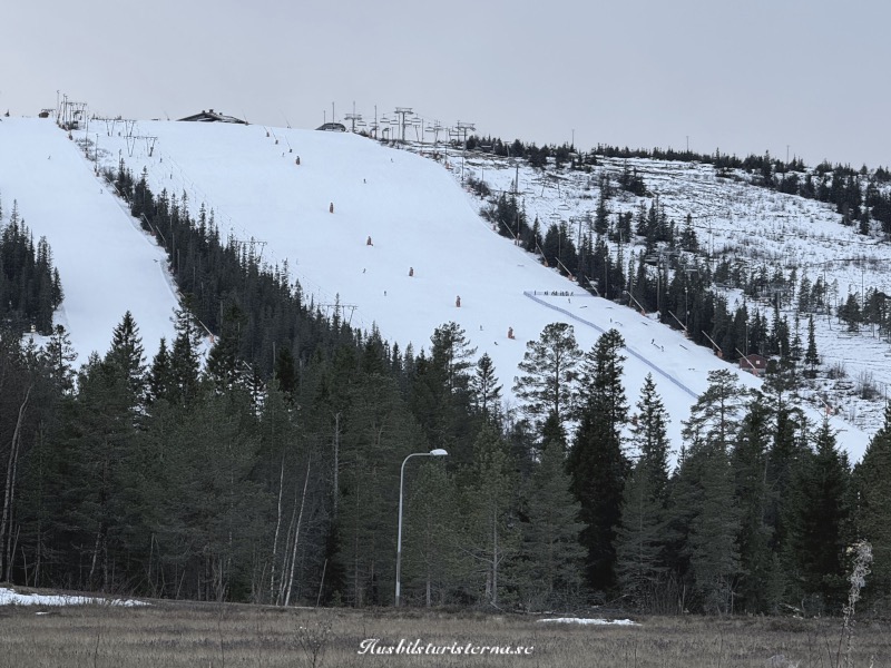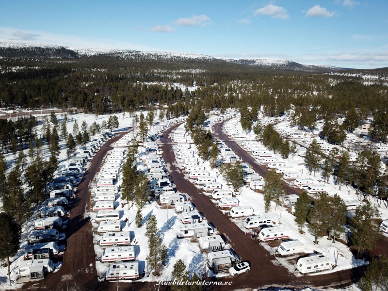 Blev ett kort från lite högre höjd innan vi lämnade campingen. Man ser att det fortfarande var gott om snö i backarna. Var en hel del ekipage som lämnade campingen varje dag, men som syns på bilden var det väldigt många kvar. Gott om tid att packa ihop, eftersom man stänger vintersäsongen den 30/4.