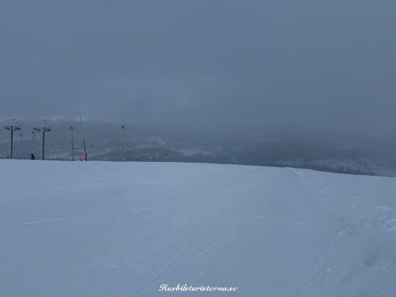 Gjorde en liten shoppingrunda ner till Karl Hedin Bygghandel i Lindvallen för att köpa skruvar. Blev ett kort stopp vid Högfjället för att ta kort på diset. Såg ingen som åkte knappliften i snålblåsten.