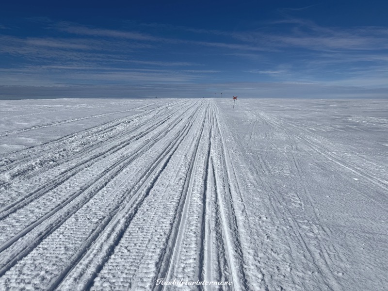 Sent på kvällen blåste det rejält och snöade horisontellt. Fortsatte blåsa rejält i flera dagar, och kom 4-5cm blötsnö. Blev bara snöröjning och ingen skidåkning.
