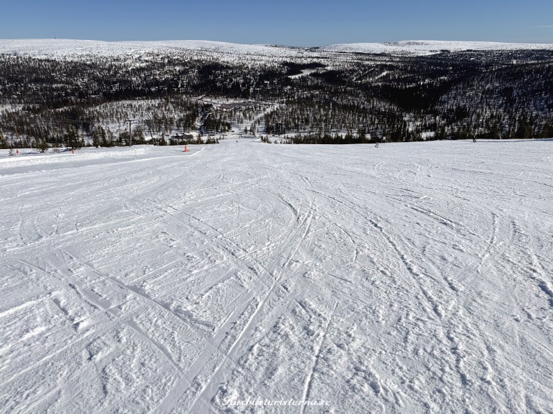 Åkte en hel del i Hundfjället. På bilden ovan ser man restaurang Lyktan, längst till höger. Stora backen i Tandådalen ligger lite till vänster om mitten i bilden.