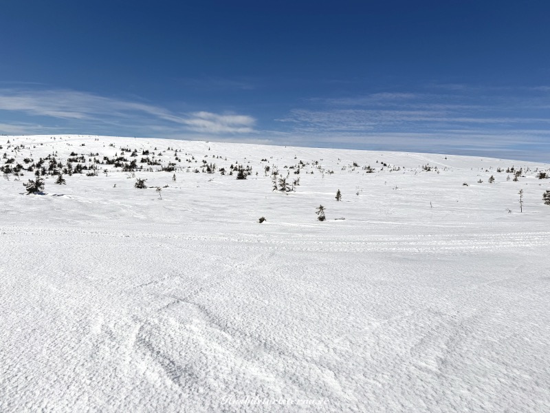 Efter utförsåkningen testades skoterleden, men det var för mycket sorbetaktig snö och stora pucklar, blev bara knappt 1 mils åkning.
