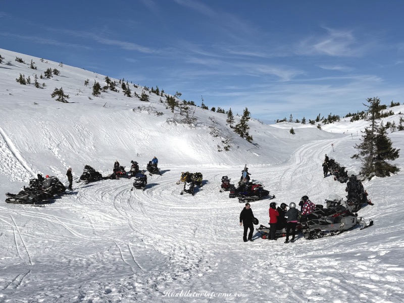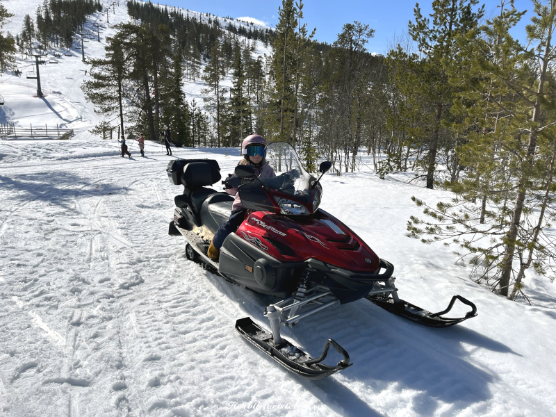 Tog skotern upp mot fjället, efter skidåkningen.