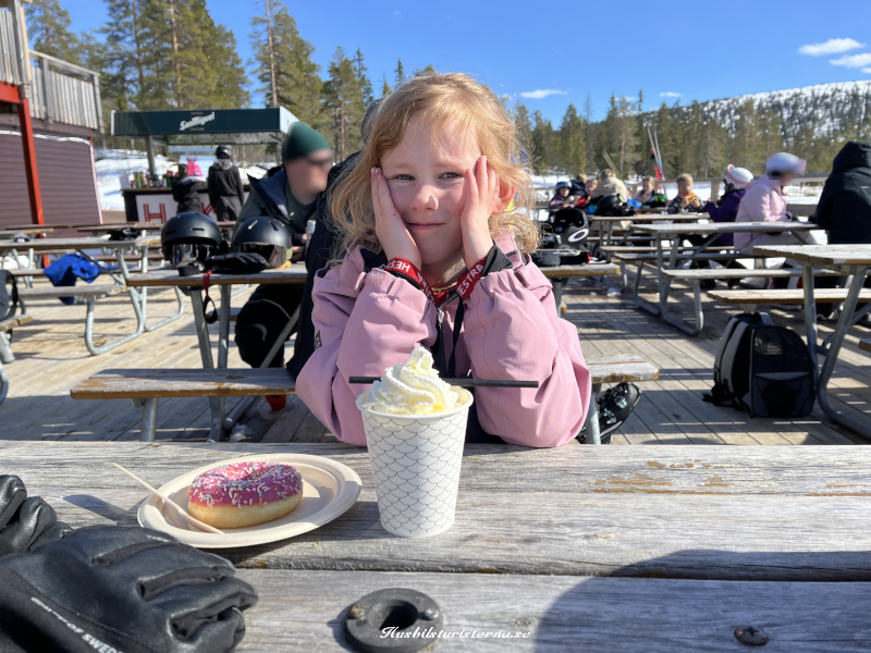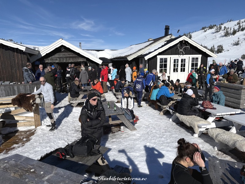 Var fullt med både skoteråkare och skidåkare, som hittat dit i det fina vädret. Blev bara ett kort stopp, för att det var lång kö till serveringen.