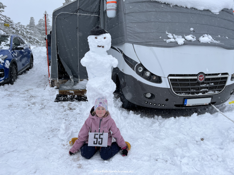 En av våra husvagnsgrannar åkte Vasaloppet, så vi röjde bort snön från hans plats. Han var mycket tacksam då han kom tillbaka till campingen efter att ha fullföljt Vasaloppet på knappt 6 timmar.