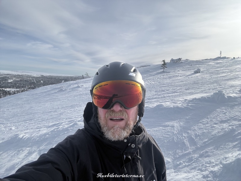 Einar åkte lite i ganska folktomma backar. Stannade och tog en selfie i Kalvåsbacken.