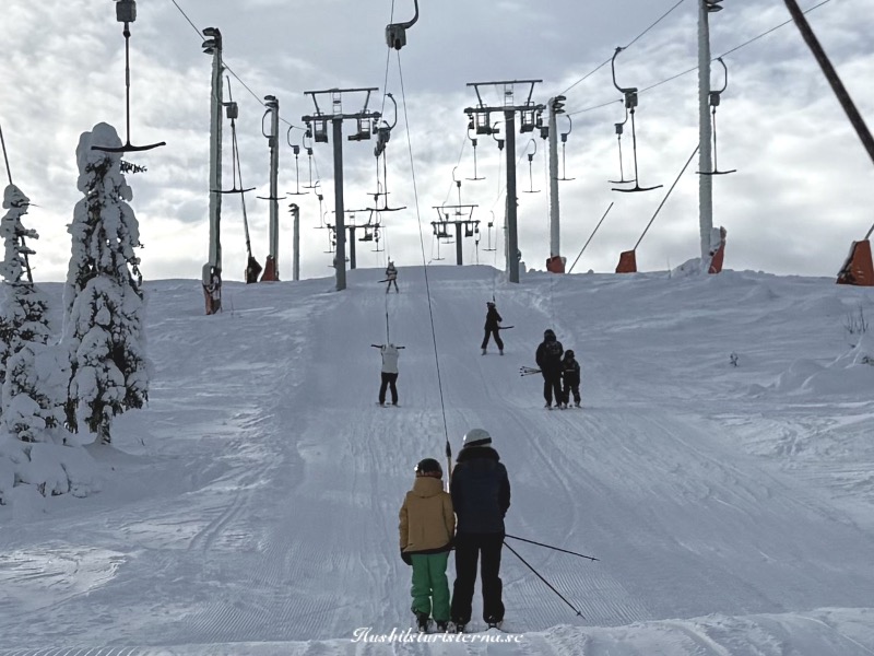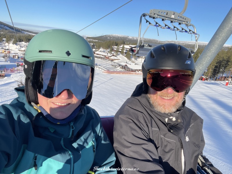2 som är på väg upp i liften efter 1:a åket.