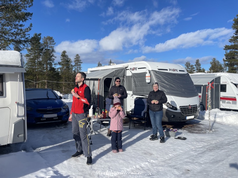 Var ganska mycket folk och man såg att solen lyste över Trysil (uppe till vänster). Efter en bra förmiddag var det dags för lunch, i husbilen. Solen tittade fram lite då och då, så meteorologerna hade i alla fall inte haft helt fel