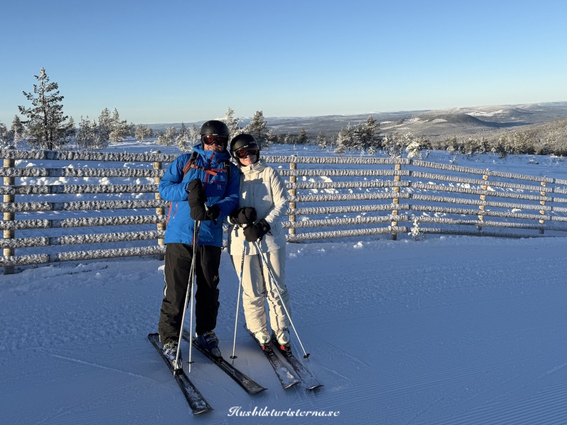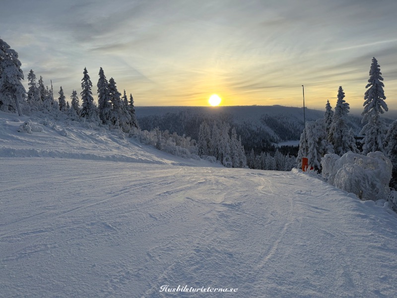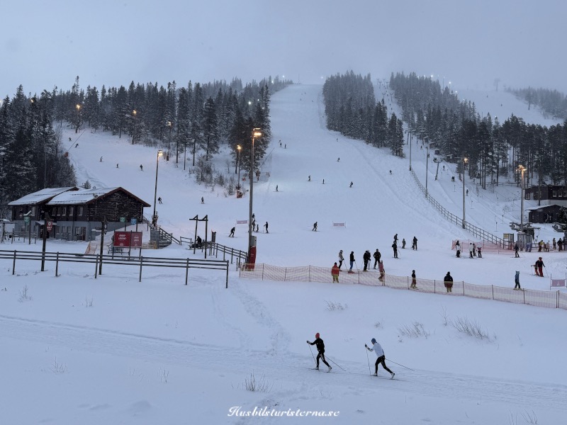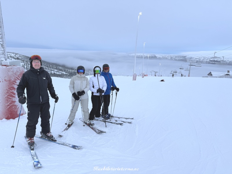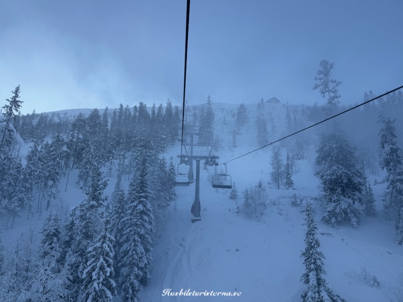 Ibland kom det dimbankar drivande in över backarna, men det var ett mindre problem. Efter några timmar åkte vi bort till Lyktan och tog varsin kopp choklad med vispgrädde.