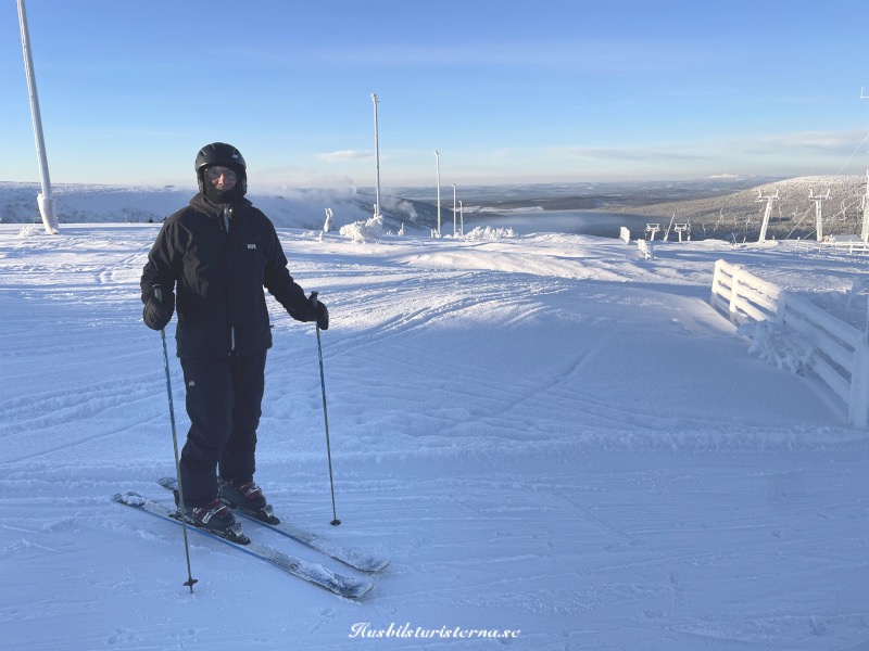 Nästa dag tog Einar sig upp till toppen i Tandådalen. Var väldigt gott om plats, trots att många backar fortfarande var stängda. Blev bara några få åk, eftersom artrosen i vänster knä gjorde sig påmind.