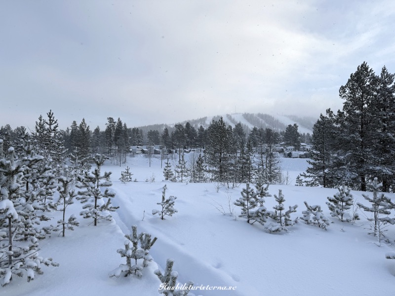 Tog ett kort mot campingen, med backarna i bakgrunden. Svårt att tänka sig att det var barmark 1 vecka tidigare, när det nu var 30-40 cm djup snö.
