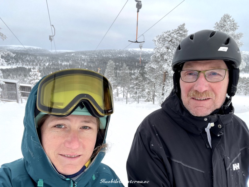 Sandra och Einar på väg upp i liften.