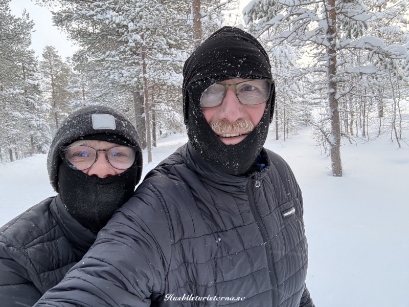 Vi försökte oss på en selfie, i snöyran. Blev inte bästa kortet på oss, men man kan i alla fall ana att det var ganska kallt ute.